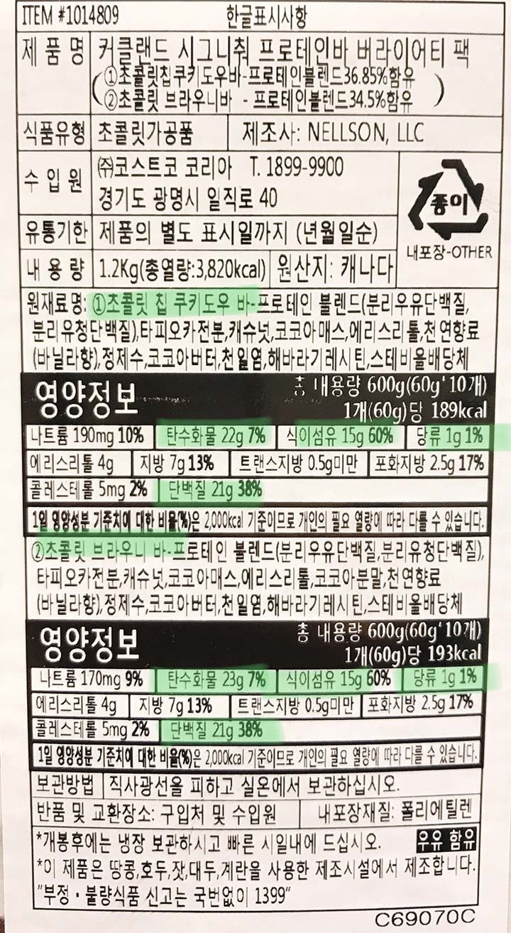 코스트코에는 브라우니 + 쿠키도우맛만 있어서 몰랐는데 쿠팡 직구에는 피넛버터청크와 쿠키앤크림맛도 있다. 비닐 패키지 색이 달라서 확 끌린다. 새로운 맛이라니... 게다가 브라우니 + 쿠키도우맛 조합보다 약 10%저렴하다.